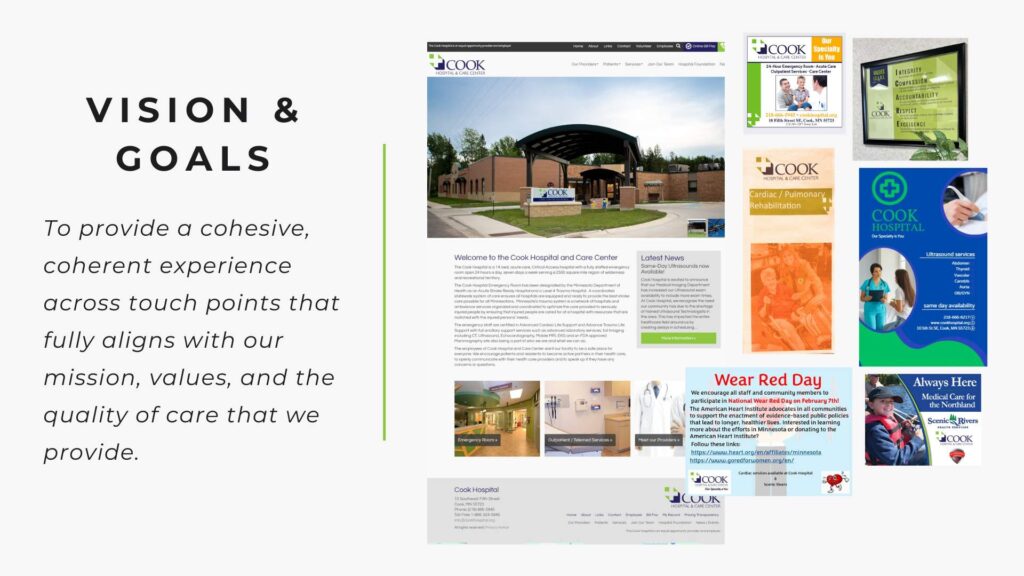At Cook Hospital & Care Center, we are driven by a deep commitment to providing exceptional care for our community. Our brand is a reflection of this passion—creating a clear, consistent, and thoughtful presence across everything we do.